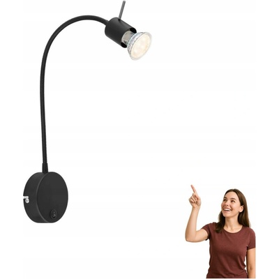 Celokovová nástěnná lampa Brilliant, polohovatelná, husí krk, černá, 1 x G9, integrovaný spínač. Celokovová nástěnná lampička SKIRT zaujme svým atraktivním a funkčním designem...