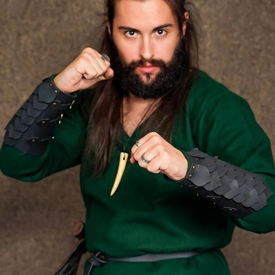 Vikingské kožené nátepníky Ragnar Vyrobeno ze dvou vrstev hovězí kůže Uvnitř měkká semišová kůže Na vnitřní straně ruky zavazování na koženou šňůrku V dodávce jsou dva...