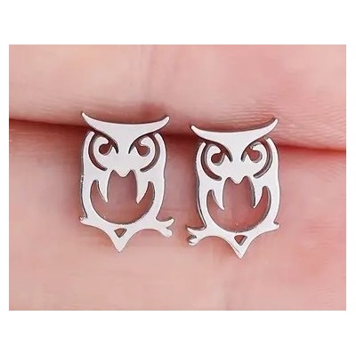 Náušnice s motivem sovy NAU00748 vyrobené z chirurgické oceli 316L. Sova je vysoká 18mm a široká 10mm.