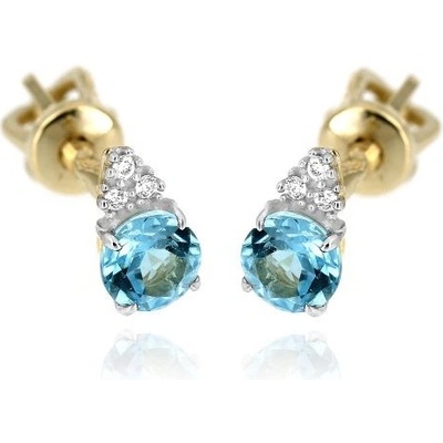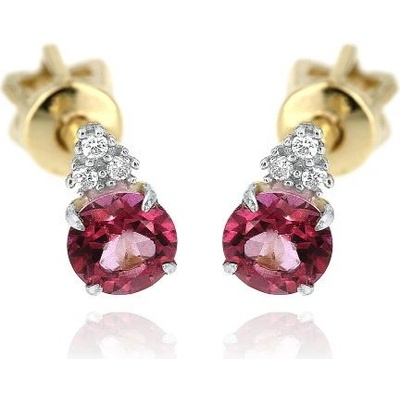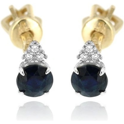 Krásné dámské zlaté náušnice. Jedinečnost šperku vyrobeného ze žlutého zlata v ryzosti 585/1000 podtrhují ručně zafasované drahé kameny. Pár náušnic: Ozdobu náušnic tvoří...