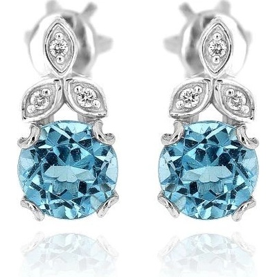 Krásné dámské zlaté náušnice. Jedinečnost šperku vyrobeného z bílého zlata v ryzosti 585/1000 podtrhují ručně zafasované drahé kameny. Pár náušnic: Ozdobu náušnic tvoří modrý...