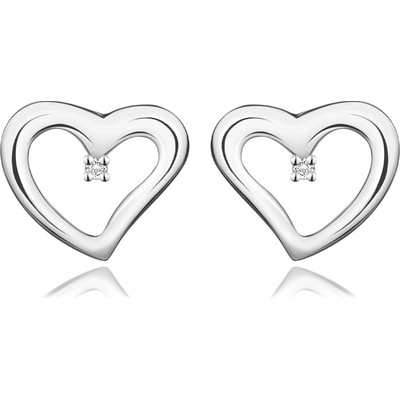 Stříbrné náušnice 925 mají tvar obrysu srdce s hladkým a lesklým povrchem. Ve spodní části středového výřezu je zasazen broušený diamant v průhledném provedení. Náušnice se...