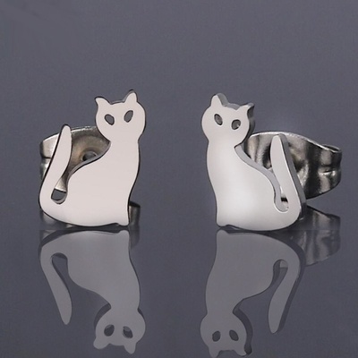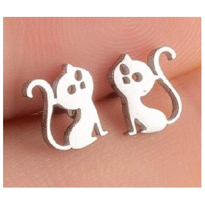 Ocelové náušnice ve tvaru roztomilé kočky. Náušnice kočka jsou vhodné pro všechny milovníky koček.