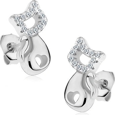 Puzetové náušnice - stříbro 925, kočka s třpytivým obrysem hlavy a výřezem v podobě srdíčka na bříšku.