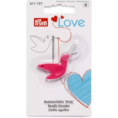 Praktický navlékač nitě do jehly ve tvaru ptáčka, s ochranným víčkem chránícím navlékací háček a s ořezem nitě. Značka Prym. Barva růžová, balení 1 kus.