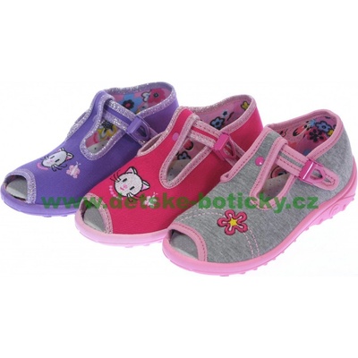 Vrchový materiál textil, kožená stélka, zapínání na suchý zip, záruka 2 roky. Dívčí papučky s jednoduchým upínacím páskem na suchý zip. Ideální jako školní přezůvka nebo...