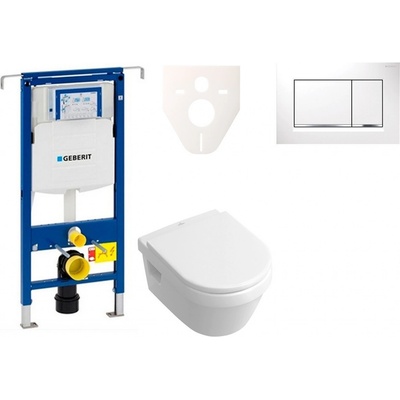 Set předstěnové instalace, klozetu a sedátka Villeroy & Boch, tlačítka Sigma01, alpská bílá Obsahuje předstěnový instalační prvek Geberit Kombifix (110.302.00.5), se...