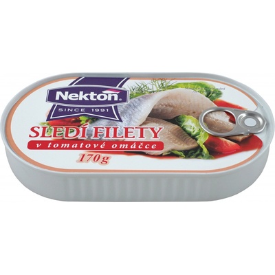 Nekton Sledí filety v rajčatové omáčce 170g Díky omega-3 mastným kyselinám, kterém sledi obsahují, dochází k posilování Vašeho imunitního systému. Kromě toho tento druh...