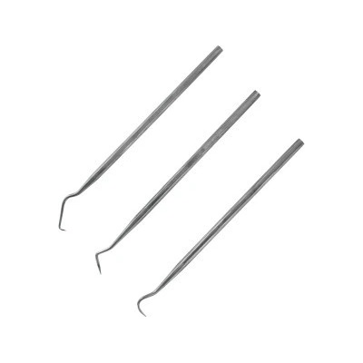 Sada 3 kusů mini háčků Modelcraft z nerezové oceli. Tyto ocelové nástroje umožňují přesné tvarování a rytí na modelech a různých předmětech. Usnadní práci modelářům a řemeslníkům při jemném vyhlazování a nanášení měkkých materiálů a tmelů.