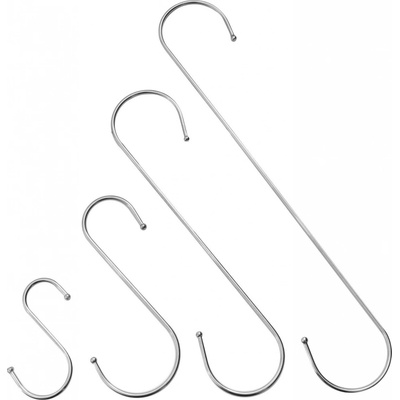 Nerezové háčky zakončené kuličkou v dostání ve velikosti 65 / 80 / 100 / 130 / 150 / 180 / 210 / 300 / 410 a 510 mm. Háčky ve tvaru S jsou vhodné pro kuchyňské a dílenské...