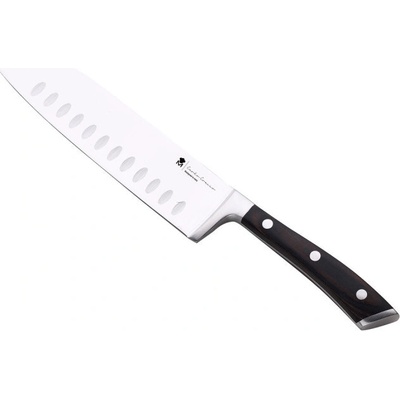 Kuchyňský nůž Masterpro Santoku z nerezové oceli / 17,5 cm / černá Santoku nůž s malými drážkami na ostří, které omezují lepení potravin během řezání. Kus je vyroben z vysoce...
