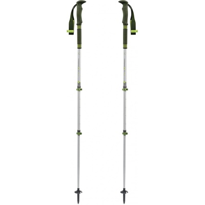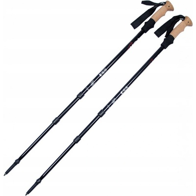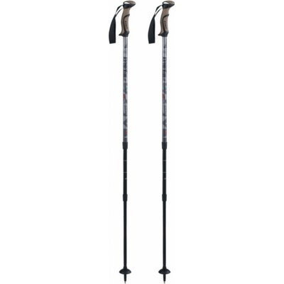 Trojdílné teleskopické hole Levnější varianta nejprodávanějšího typu trekových holí. Uzamykatelné odpružení Dodáváno s kulatými krytkami, malými talířky a konektory holí...