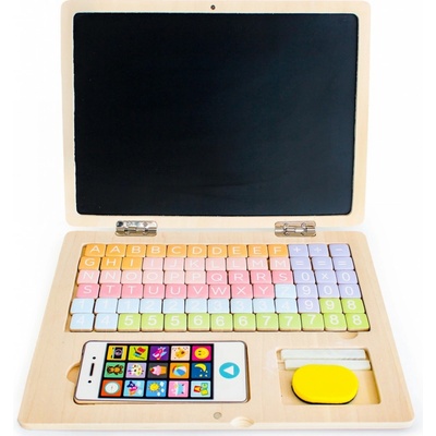 Dřevěná hračka, která se bude líbit a zároveň bude působit příznivě na rozvoj dítěte. Laptop má namísto monitoru magnetickou tabuli, na kterou mohou děti psát a kreslit....