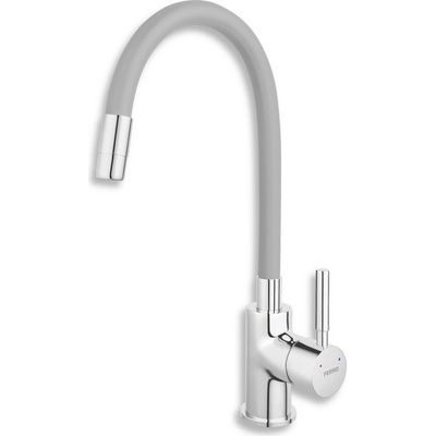 FERRO Zumba II, Dřezová/Vysoká stojánková baterie s elastickým ramenem, šedá-chrom BZA42S Dřezová baterie s pružným výtokem pochází ze zajímavé kolekce Ferro Zumba. Umožní...