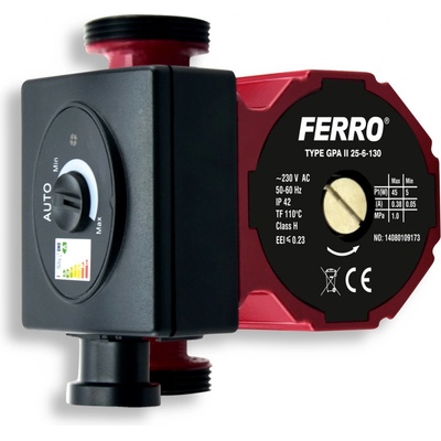 Průtok 0,2 - 3 m3/h Výtlačná výška 6,2m Maximální tlak 1MPa El. příkon 5-45W Stavební délka 180 mm Připojovací závit 6/4"