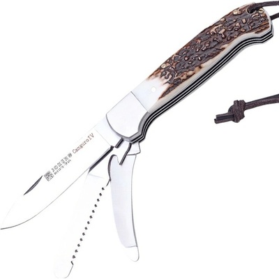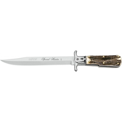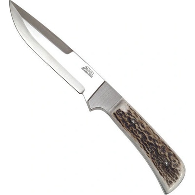 Celková délka: 30,5 cmDélka čepele: 19 cmTloušťka čepele: 4 mmMateriál oceli: AISI 440BTvrdost: HRC 56-58Úprava čepele: SatinRukojeť: Jelení parohHmotnost: 270 gPouzdro: Kožené...