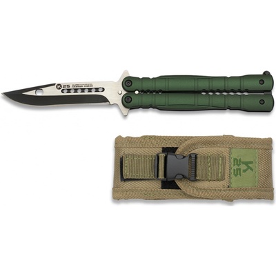 Kovový zavírací nůž, tzv. motýlek od španělské značky K25.Vlastnosti:• otevřete ho (nebo zavřete) jednoduše překlopením dvoudílné rukojeti a zajistíte pojistkou na konci...