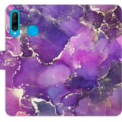 Knížkové flipové pouzdro, obal, kryt iSaprio pro mobil Huawei P30 Lite - Purple Marble - kapsičky na karty, ochrana celého telefonu, funkce stojánku, odolná TPU vanička,...