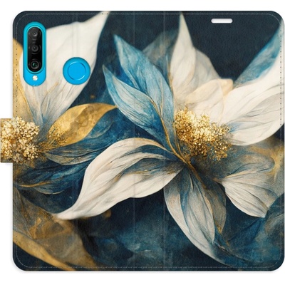 Knížkové flipové pouzdro, obal, kryt iSaprio pro mobil Huawei P30 Lite - Gold Flowers - kapsičky na karty, ochrana celého telefonu, funkce stojánku, odolná TPU vanička,...