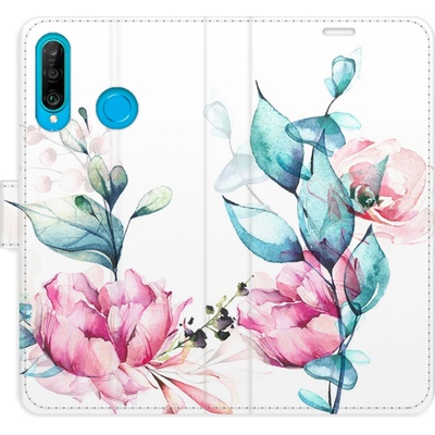 Knížkové flipové pouzdro, obal, kryt iSaprio pro mobil Huawei P30 Lite - Pink Flowers - kapsičky na karty, ochrana celého telefonu, funkce stojánku, odolná TPU vanička,...