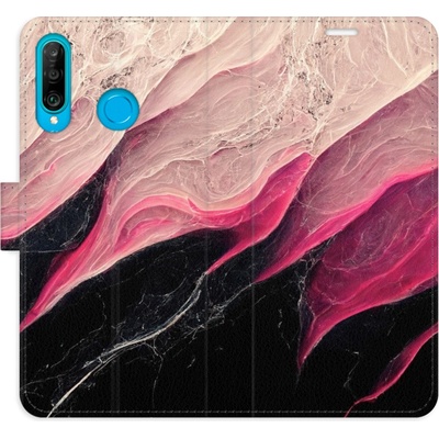 Knížkové flipové pouzdro, obal, kryt iSaprio pro mobil Huawei P30 Lite - BlackPink Marble - kapsičky na karty, ochrana celého telefonu, funkce stojánku, odolná TPU vanička,...