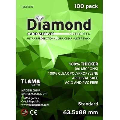 TLAMA games Obaly na karty Diamond Green: Standard 63,5x88 mm 80 mikronů, 100 ks