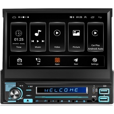 UNIVERZÁLNÍ AUTORÁDIO 1DIN SE SYSTÉMEM ANDROID, VYJÍŽDĚCÍM DISPLEJEM (MOTORIZOVANÝ), DRUHÝM MALÝM DISPLEJEM, MOŽNOSTÍ NASTAVENÍ SKLONU OBRAZOVKY, 2X ČELNÍM USB VSTUPEM A...