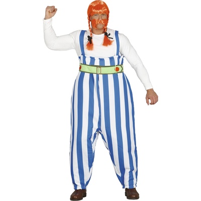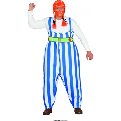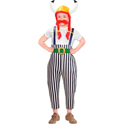 \nKarnevalový kostým galského bojovníka Obelixe. \nMateriál: 100% polyester \nVelikost: 128 cm, 5-7 let \nKostým Obelixe obsahuje: kalhoty s kšandami, pásek, helmu s copy a knír\n