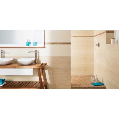 Jednoduché, ale při bližším zkoumání propracované obklady v imitaci travertinu Lazio promění vaši koupelnu v místo, ze kterého se vám bude jen těžko odcházet. Obklady v imitaci přírodního travertinu jsou doplněny dekorem a listelou v přírodních vzorech i designově...