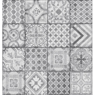 Stěnový vinylový obklad na zeď 2700175 Azulejos, šedobílé dlaždice, šedobílá dlažba, retro kachličky je určen zvláště do kuchyní nebo koupelen. Je odolný vůči vodě, páře a...