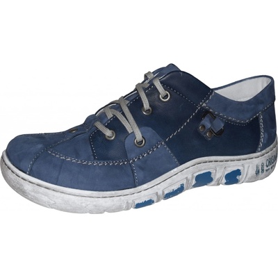 Dámská vycházková obuv Kacper má hezky propracovaný svršek v modré barvě. Světlá podešev je také lehce šmrncnuta modrým nabarvením. Komfortní je celokožené provedení s novou...