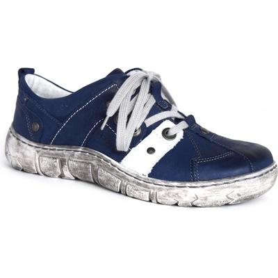 Dámská volnočasová obuv Kacper je v kombinaci bílé a modré barvy. Bílý svršek má ražený povrch, na modrém svršku vyniká bílé prošívání. Obuv je pohodlná a komfortní díky...