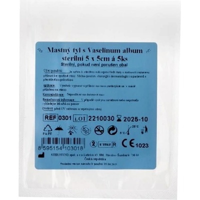 Sterilní mastný tyl je vyroben z obvazové textilie S20 - vysoce porézní hydrofobní obvaz z chemických vláken, určený pro impregnaci léčiv v tekutém nebo masťovém základu....