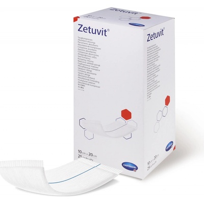 Zetuvit kompres sterilní 10x20 cm, balení 25 ks baleno jednotlivě Charakteristika Vysoce bělená buničina rozvádí sekret, čímž je využita absorpční kapacita savého jádra (z...
