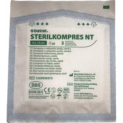 Kompresy Batist z netkaného textilu jsou vyrobeny ze směsi 70 % viskózy a 30 % polyesteru o plošné hmotnosti 30 g/m2. Tkanina je složena do formy kompresů o čtyřech vrstvách....