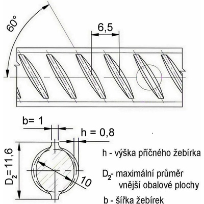 Kruhová tyč s žebírky, nazývaná roxor nebo též betonka. PoužitíPoužívá se k výrobě armovacích drátů nebo jako samotná výztuž do betonu v rovných prutech. Technické...