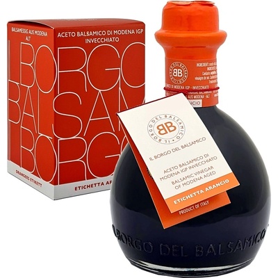Balsamico Orange Label Aged PGI z rodinné farmy Il Borgo del Balsmaico V Modeně se balsamico vyrábí již více jak tisíc let a i balsamico Il Borgo se vyrábí za použití...