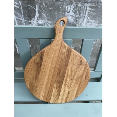 Masivní dubové prkénko v nadčasovém kulatém tvaru. Spojuje funkčnost s přírodní elegancí. Vyrobeno z dubového dřeva s krásnou kresbou. Rozměry: průměr: 40 cm délka včetně madla: 55 cm tloušťka: 2,5 cm