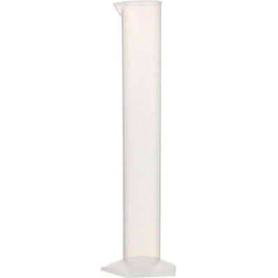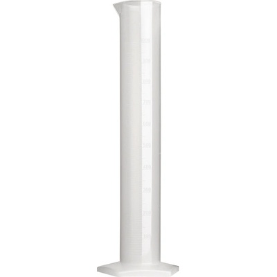 Průhledný (průsvitný) odměrný válec s lisovanou stupnicí: Průhledný (průsvitný, nikoli čirý) odměrný válec s lisovanou stupnicí (reliéf), která je kalibrovaná na dolití...