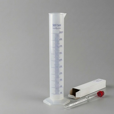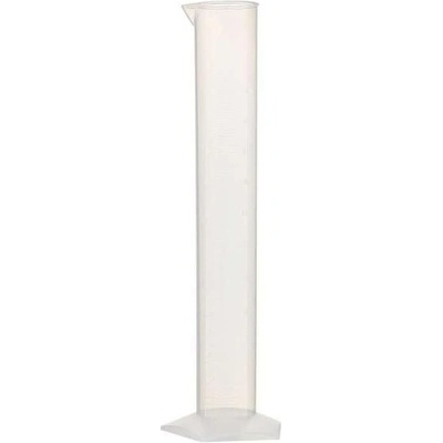 Průhledný (průsvitný) odměrný válec s lisovanou stupnicí: Průhledný (průsvitný, nikoli čirý) odměrný válec s lisovanou stupnicí (reliéf), která je kalibrovaná na dolití...