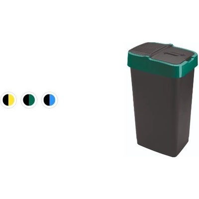 Odpadkový koš COMPACTA R DROP recyklovaný černý s světle zeleným víkem, objem 35l