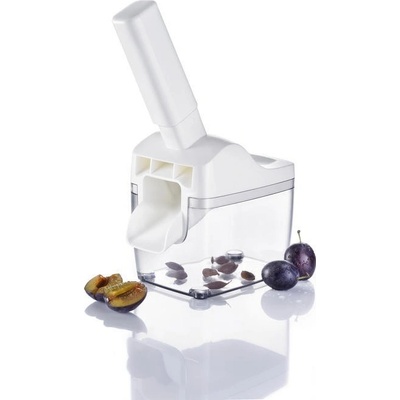 Odpeckovávač švestek se zásobníkem značky Leifheit. - praktický odpeckovávač, který rychle odstraní pecky ze švestek - porcuje švestky pro další použití - odpeckovávač má nastavitelné velikosti - materiál: plast - barva: bílá, transparentní