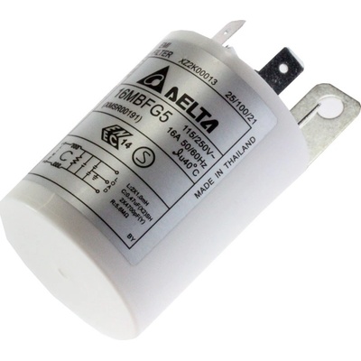 250V 0.47uF (X2) + 2x4.7nF (Y2) + 2x1mH+5.6 MOhm, vývody FAST-ON 6.3 (5x) Možno použít jako (levnější) alternativu dílů 813410431 SMEG, 482000080424 WHIRLPOOL / INDESIT, 288961...