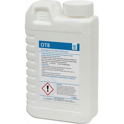 OT8 odstraňuje znečištění od oleje, nafty, kapaliny posilovače řízení či způsobené uhlovodíkovými kapalinami z obkladů, dlažebních kostek, betonu, ocelových podlah, zámkové dlažby. Můžete ho použít na příjezdové cesty, na podlahy, dlažbu v garážích a na nádvoří....