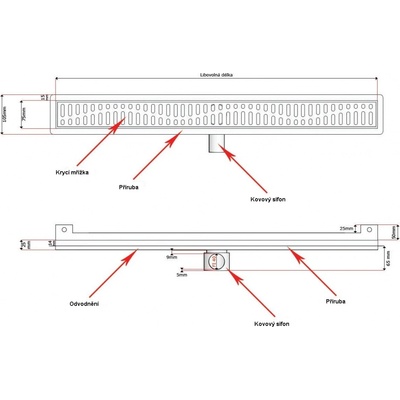 - délka: 90 cm - s PVD povlakem - pro instalaci do lepidla na dlaždice, nad potěr a těsnicí vrstvu - délku lze přizpůsobit vnitřnímu sklonu pro optimální odvodnění a samočisticí...