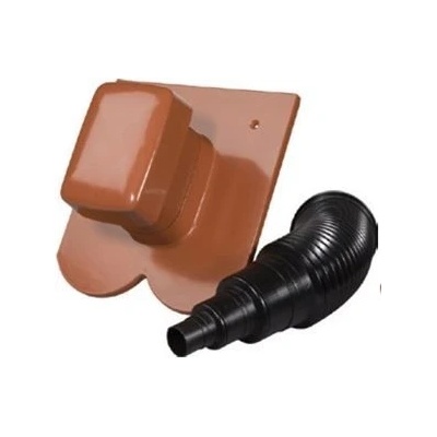 Komplet odvětrání pro tašku Tondach Stodo 12. Komplet obsahuje: keramickou prostupovou tašku keramický klobouček plastový komínek flexi hadici těsnící pryžovou manžetu lepidlo