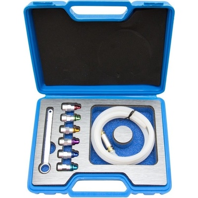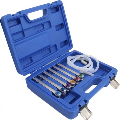 Sada 6 barevně rozlišených klíčů a silikonové hadičky se zpětným ventilem pro odvzdušňování brzd a hydraulických spojek automobilů v praktickém plastovém kufříku. - sada...