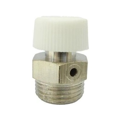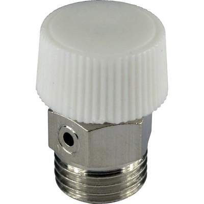 Manuální odvzdušňovací ventil 3/8" s plastovým uzávěrem k radiátorům, rozvodu topení a dalším vodoinstalacím. PN 2,5. T=110°C.