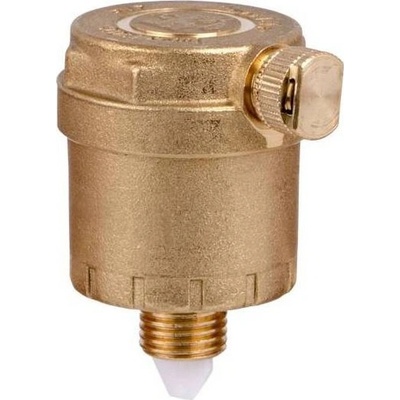 Automatický odvzdušňovací ventil z mosaze, svislý a zpětný. Ventil je schopný odvést vzduch obsažený v systémech vytápění/chlazení nebo rozvodech sanitární vody.