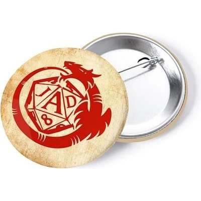 Placka s červeným logem hry na hrdiny Jeskyně a draci, která vychází ze světově nejoblíbenějšího fantasy RPG Dungeons and Dragons™ 5e. Skvělý doplněk oblečení nebo třeba batohu...